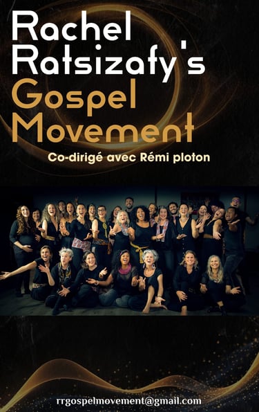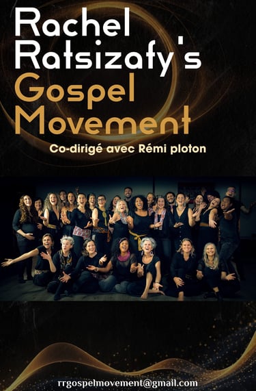 Les 30 choristes du "Rachel Ratsizafy's Gospel Movement" ou "RRGM" sont encadrés par Rachel Ratsizafy (chef de choeur et directrice artistique) et Rémi Ploton (pianiste et co-directeur artistique). Ils viendront à la Maison d'A.R peaufiner et approfondir leur répertoire ce 18 janvier 2025.
